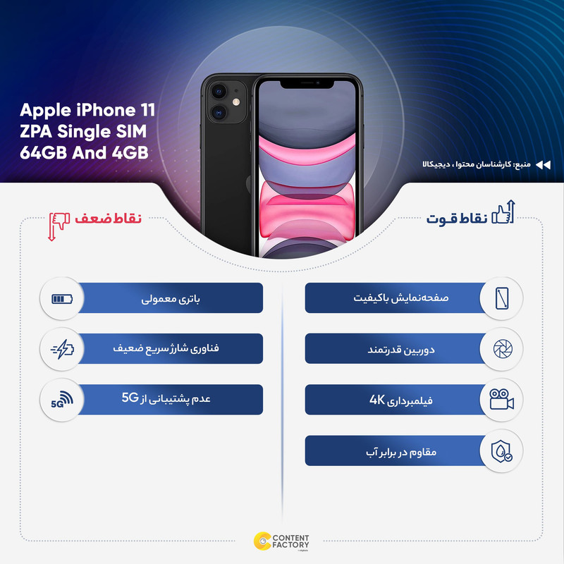 گوشی موبایل اپل مدل iPhone 11 ZPA تک سیم‌ کارت ظرفیت 64 گیگابایت و رم 4 گیگابایت